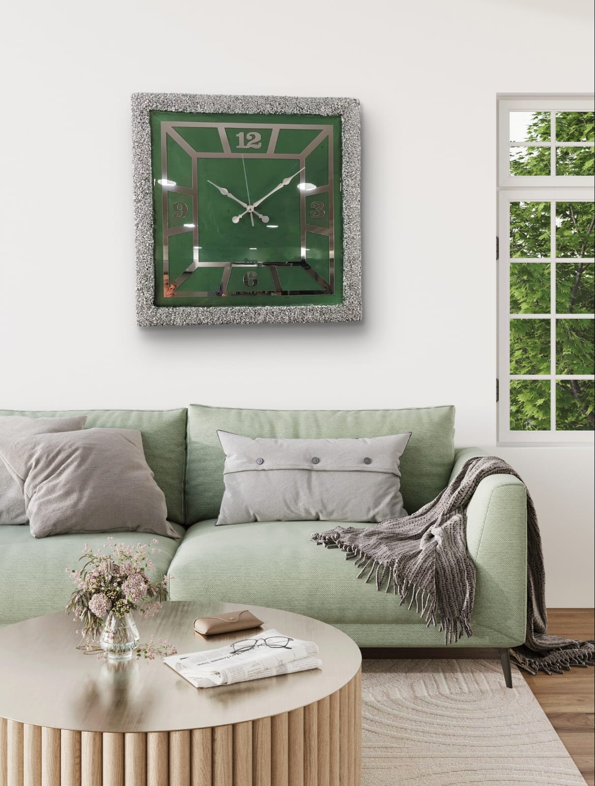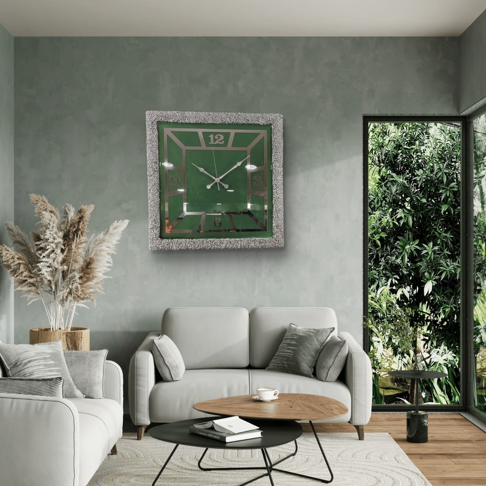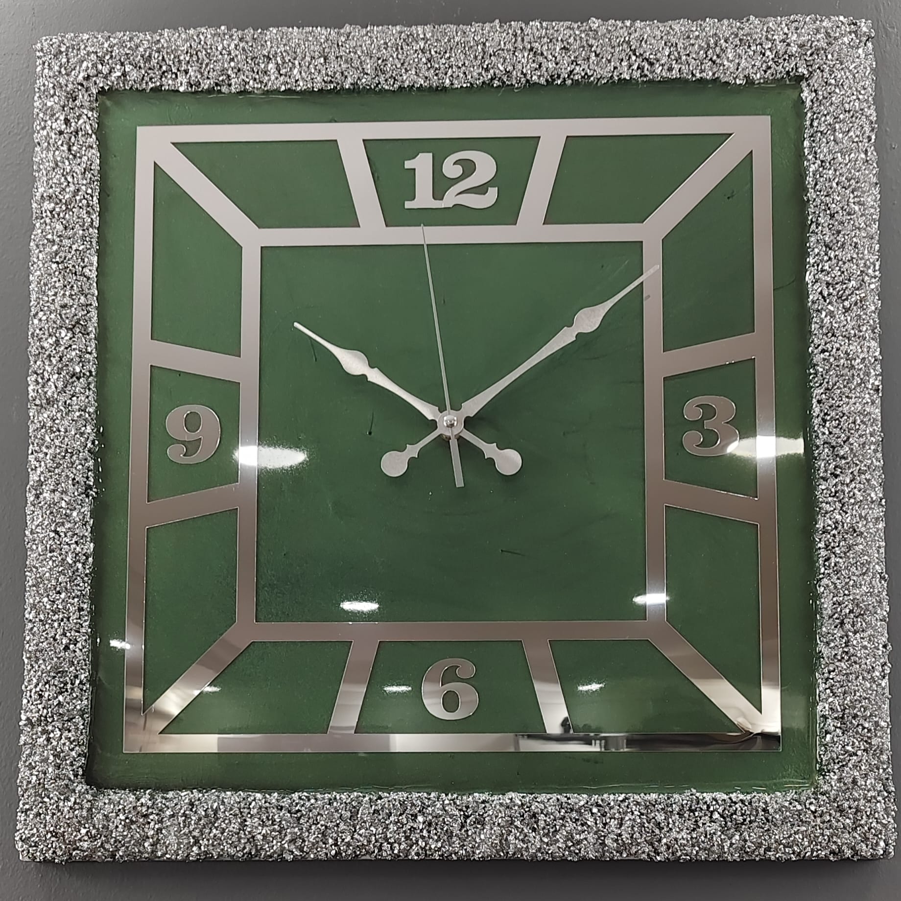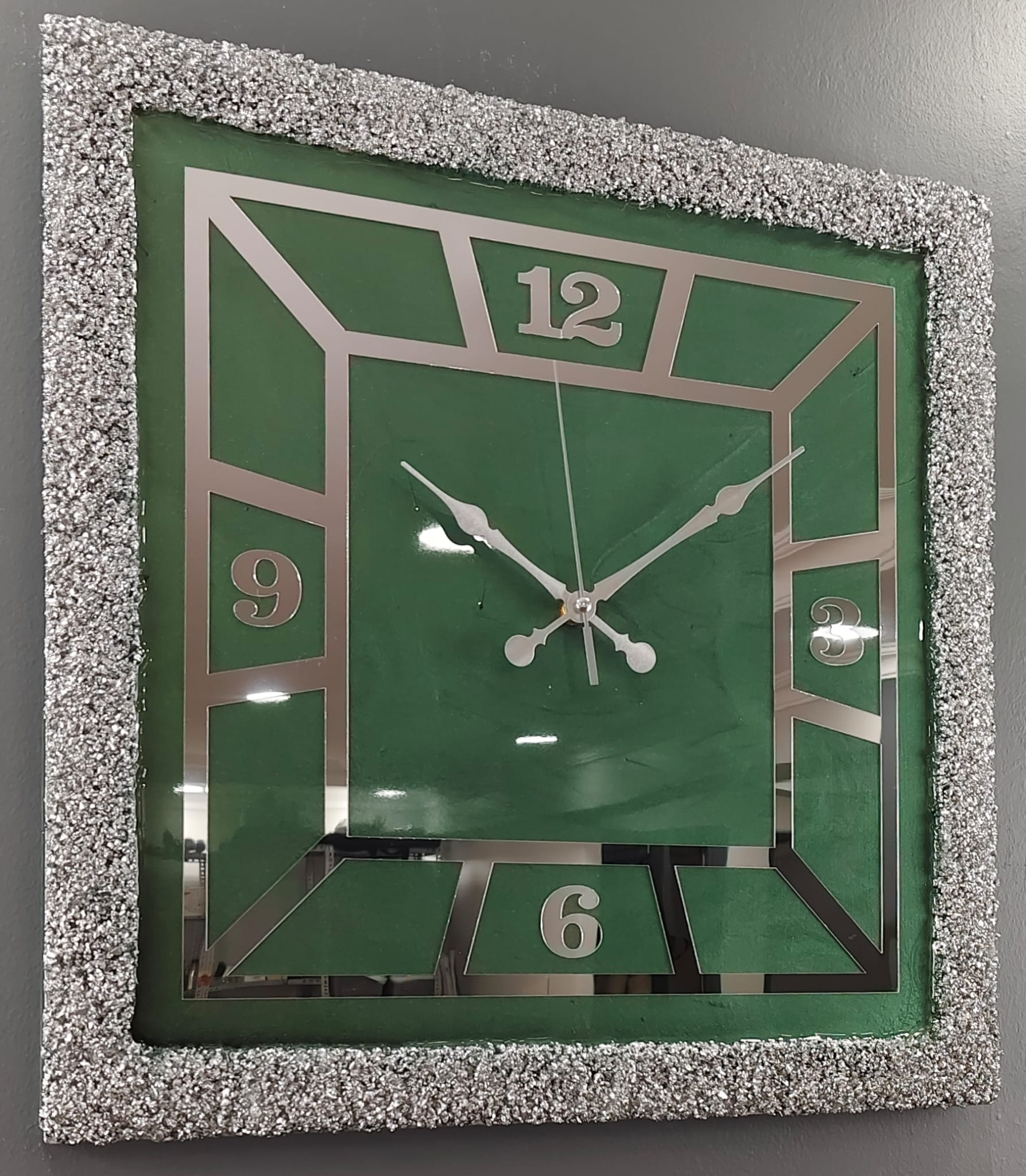 Epoksi Gümüş-Yeşil Saat 50X50 CM