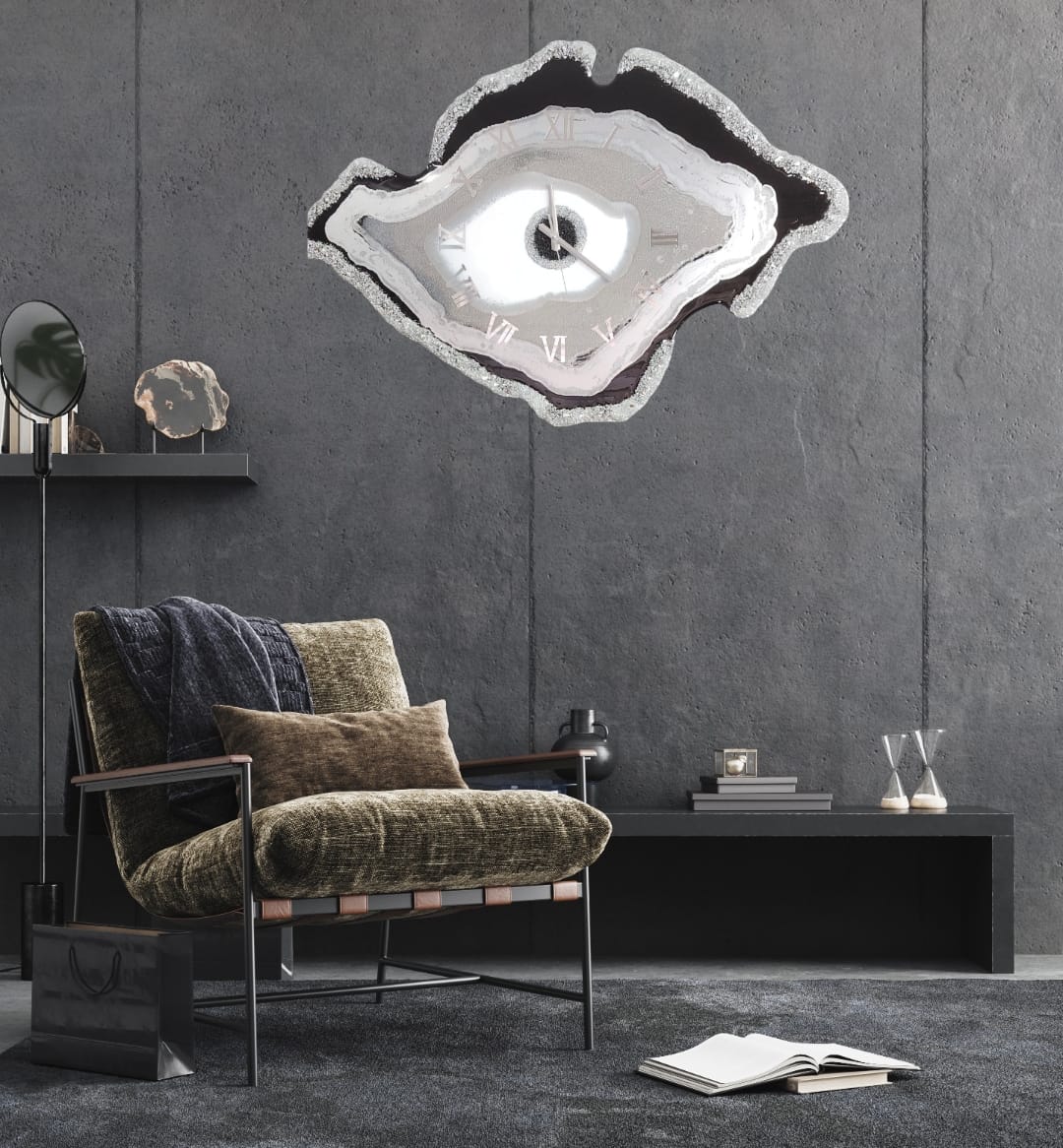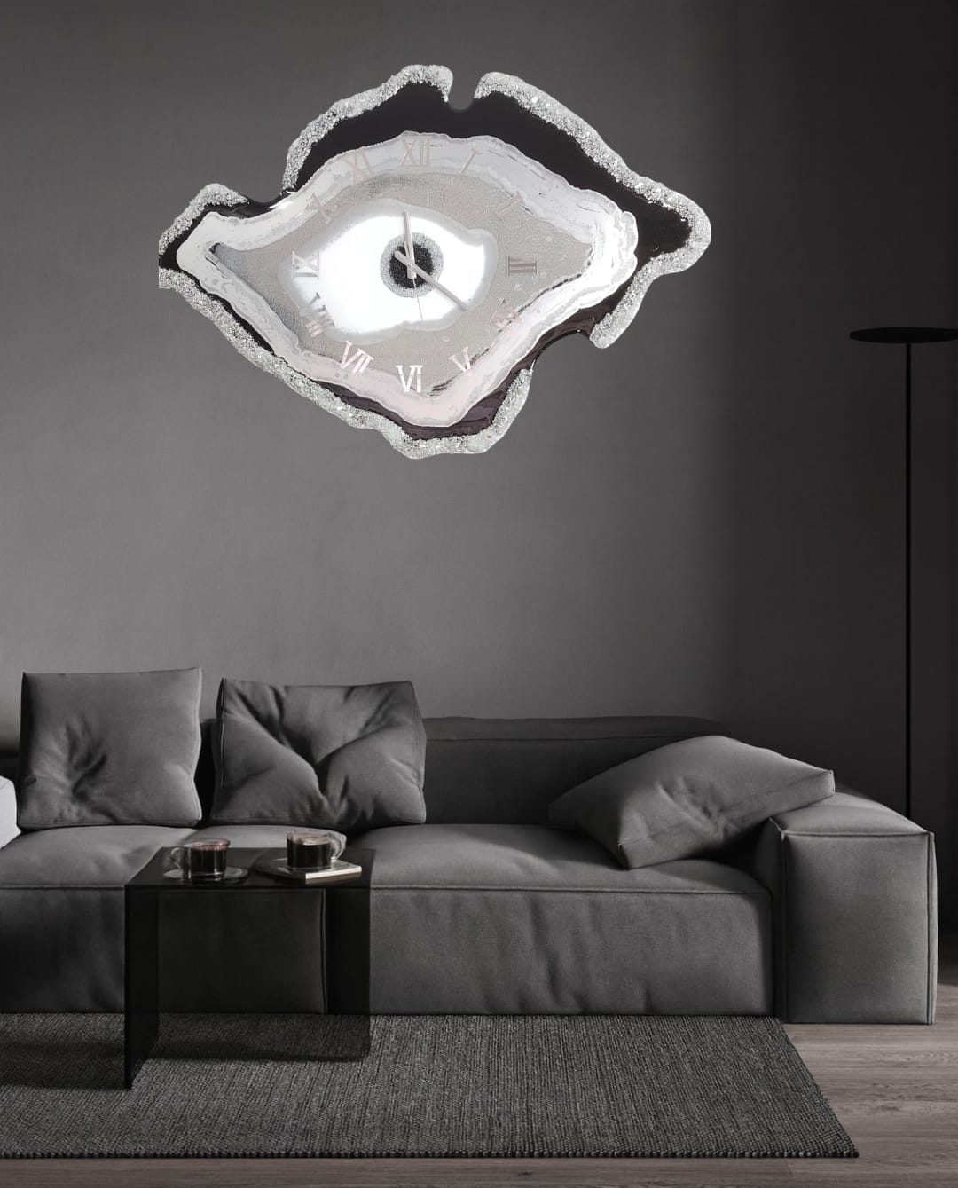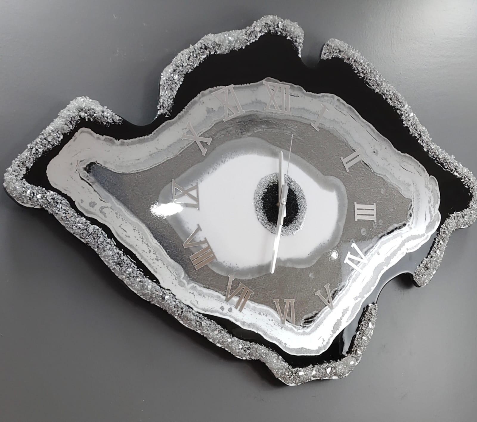 Dekoratif Epoksi Gümüş-Siyah Saat 65X98