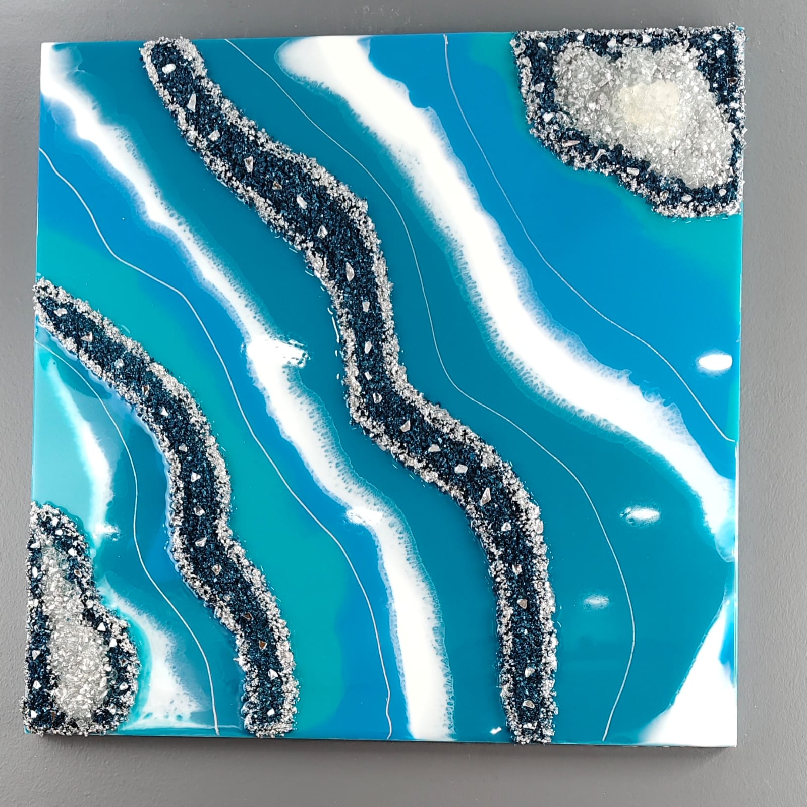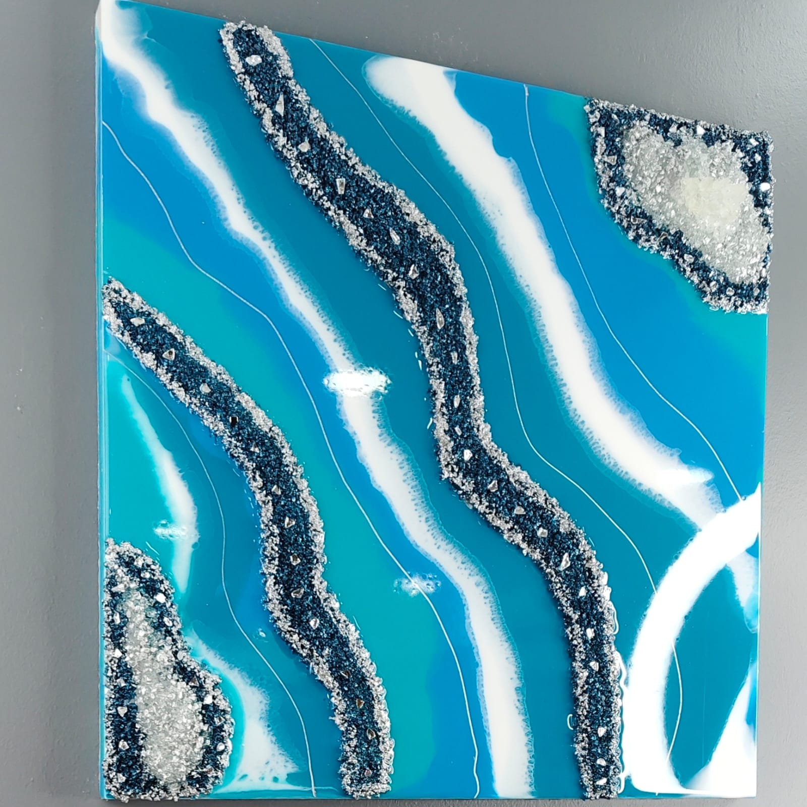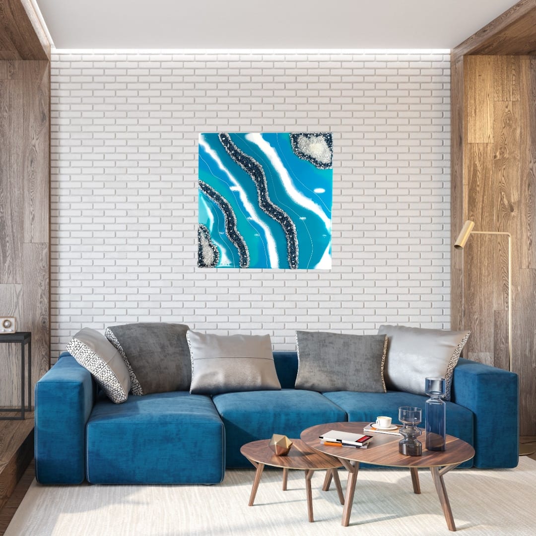 Epoksi Özel tasarım Gökyüzü Mavi-Beyaz Tablo 60X60
